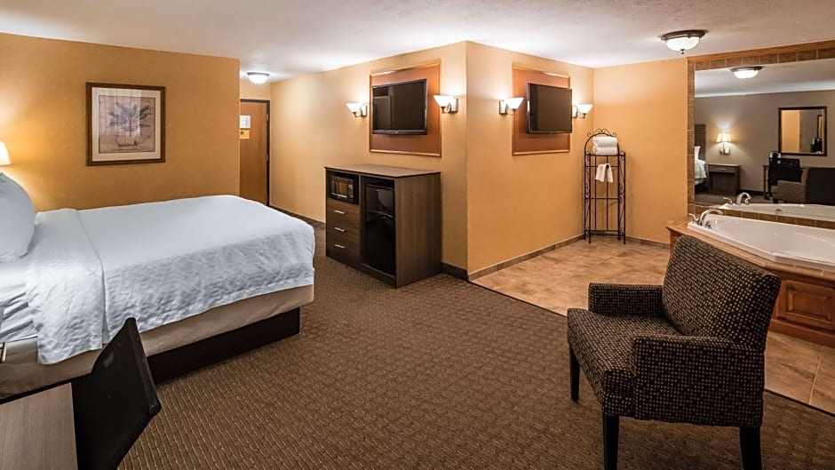This suite includes a 37-inch flat-screen TV with a DVD player, a microwave and refrigerator.